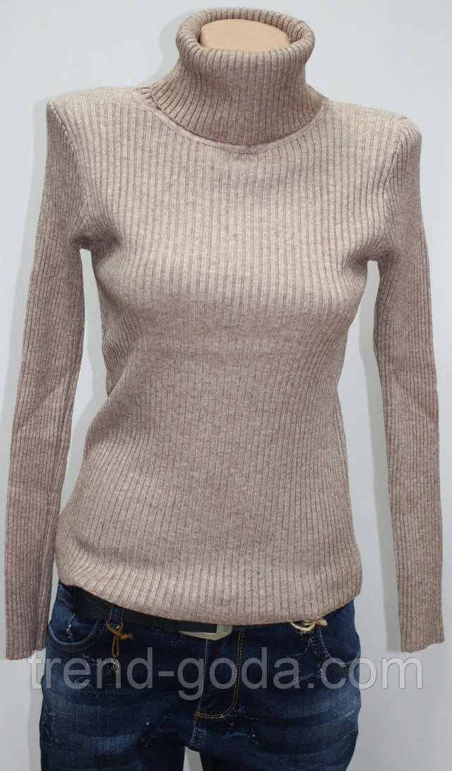 Кофта жіноча базовий теплий гольф у рубчик бежевий
