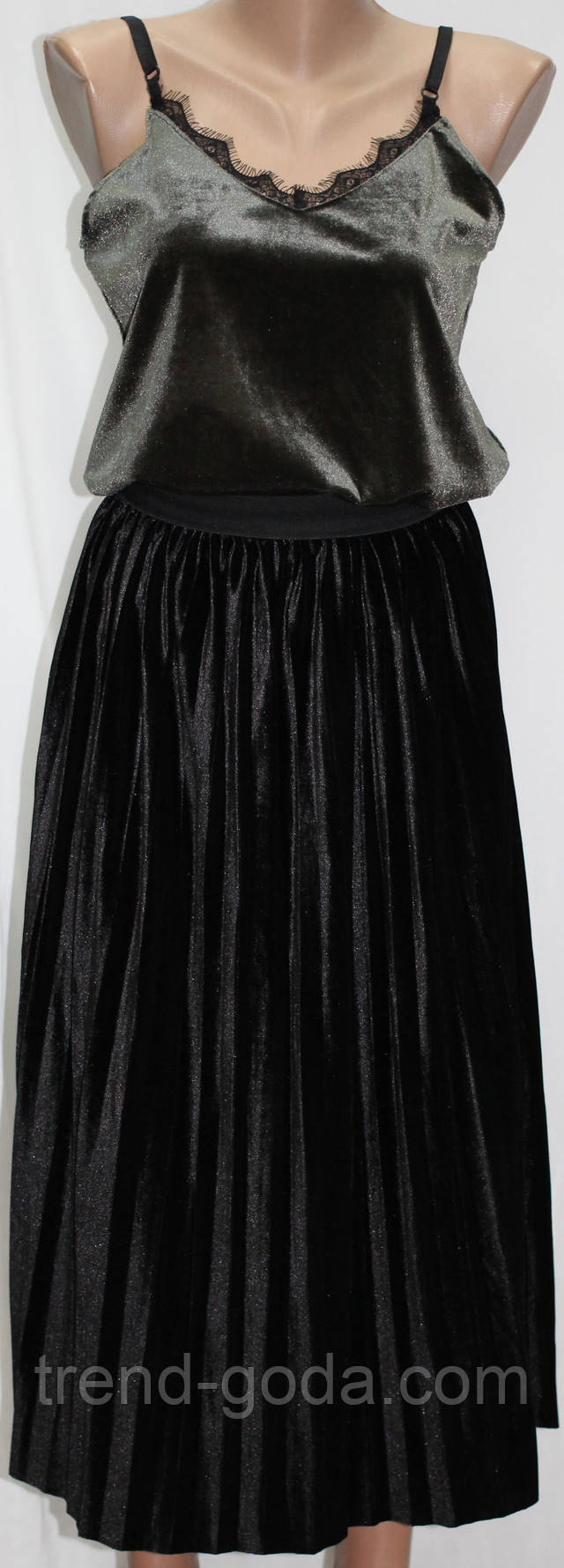 Спідниця довга велюрова гофрована. Колір чорний.