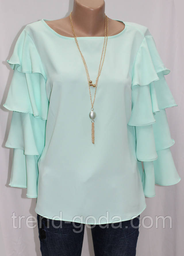 Окрасою блузи служать трьох-ярусні рукава волани.