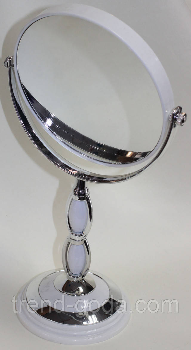 Дзеркало настільне на високій ножці, Косметичне зеркало для макіяжу, подвійне, біле кругле